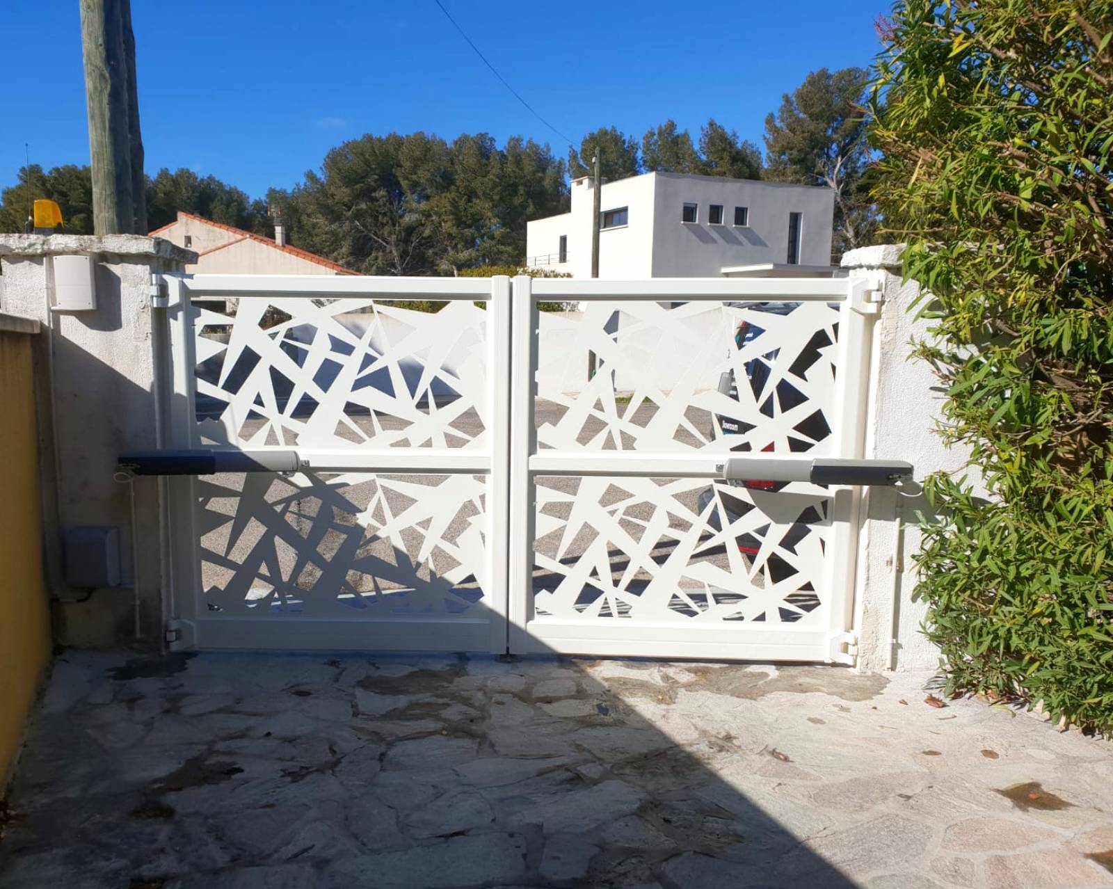 Portails aluminium battants motorisables (3 et 5m). Portail 2 ventaux en pvc longueur 4m (entre les deux pilliers 4,12m, hauteur des pilliers 1,35). Portails aluminium coulissants sur mesure (jusqu'à 6m). Disponible en plusieurs largeurs, ce portail battant en aluminium se décline en différentes teintes. Une largeur de 3 m et l?